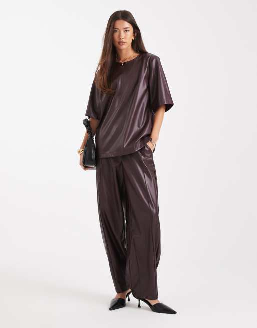 ASOS DESIGN - Blommefarvet sæt med oversized top og pull-on-bukser med tøndeformede ben i imiteret læder