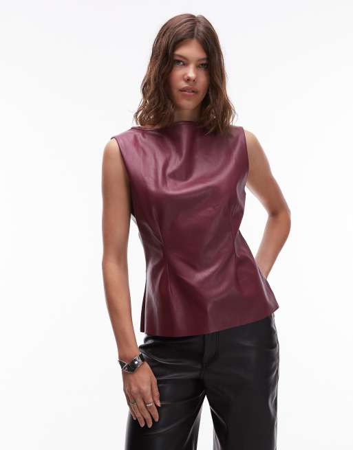 ASOS DESIGN - Blommelilla T-shirt med indsyet talje i PU