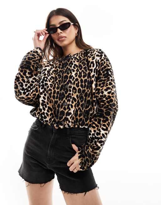 ASOS DESIGN - Bomber-jakke med leopardprint i denim