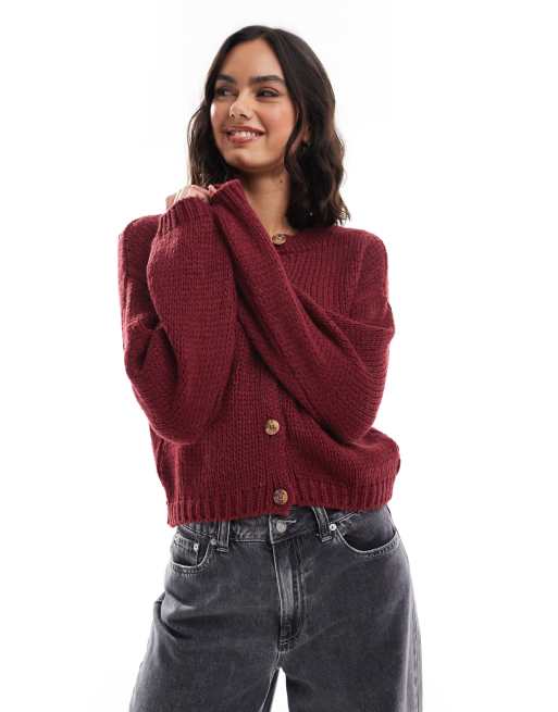 ASOS DESIGN - Bordeaux cardigan med rund hals i løstsiddende strik
