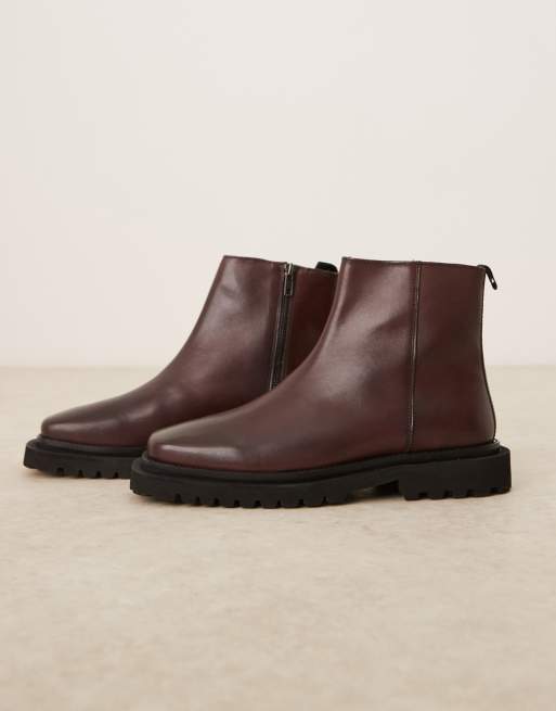 ASOS DESIGN - Bordeaux Chelsea-støvler med lynlås i læder