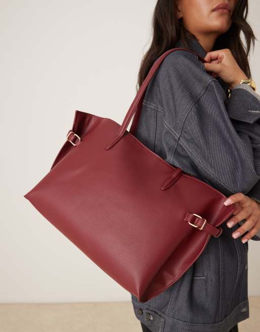 ASOS DESIGN - Bordeaux glat tote-taske med remdetaljer