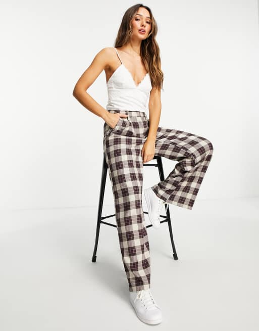 ASOS DESIGN - Bordeaux habitbukser med vide ben og blandede tern