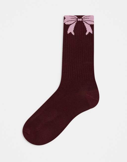 ASOS DESIGN - Bordeaux og lyserøde sokker med sløjfedesign