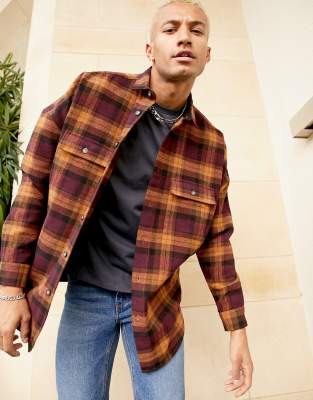 ASOS DESIGN — Bordeaux oversized 90'er skjorte i uld med tern