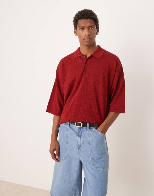 ASOS DESIGN - Bordeaux oversized polo med sænkede skuldre