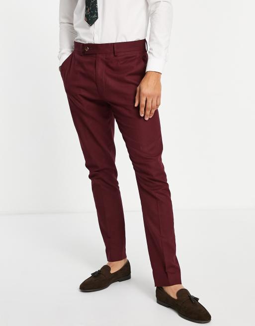ASOS DESIGN - Bordeaux skinny-habitbukser i hørblanding