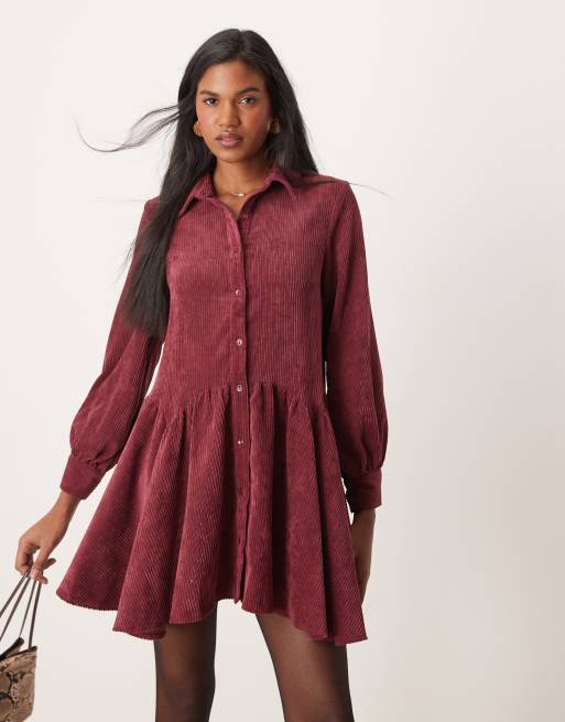 ASOS DESIGN - Bordeaux smock-minikjole med peplumkant i fløjl