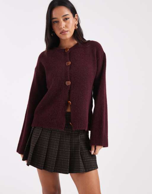 ASOS DESIGN - Bordeaux strikket cardigan med knapper i uldblanding