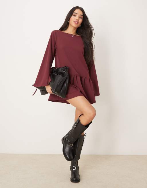 ASOS DESIGN - Bordeaux tætsiddende skræddersyet minikjole med sænket talje og svaj