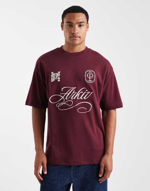 ASOS DESIGN - Bordeauxfarvet oversized T-shirt i kraftigt materiale med sportsbroderi