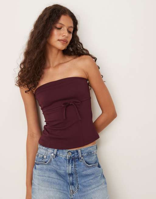 ASOS DESIGN - Bordeauxrød bandeau-top i jersey/twill med bindetalje - Del af sæt