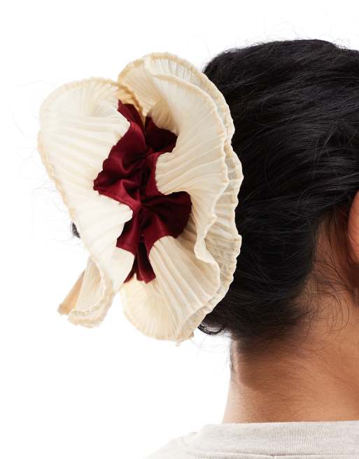 ASOS DESIGN - Bordeauxrød hårelastik med plisserede flæser i kontrast
