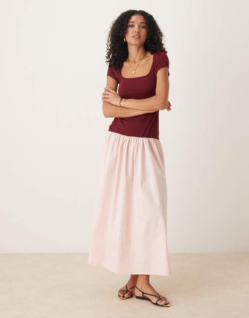 ASOS DESIGN - Bordeauxrød hybrid-maxikjole med firkantet hals og vingeærmer