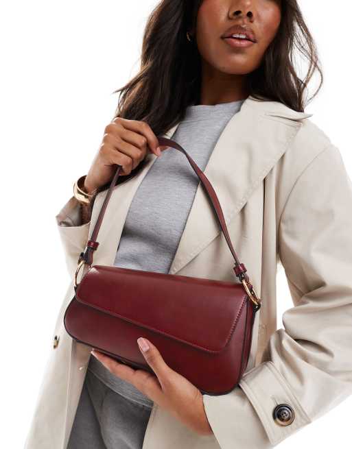 ASOS DESIGN - Bordeauxrød og asymmetrisk skuldertaske med klap fortil