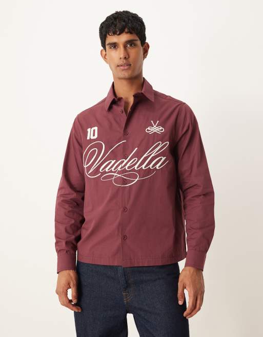 ASOS DESIGN - Bordeauxrød skjorte med broderi og afslappet pasform