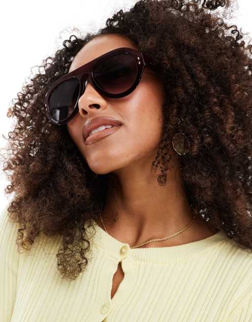 ASOS DESIGN - Bordeauxrøde og chunky aviator-solbriller