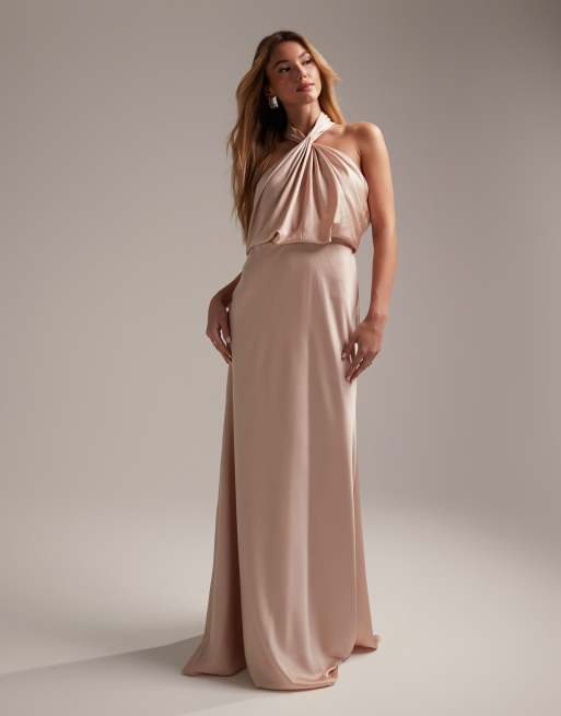 ASOS DESIGN - Brudepiger - Blush maxikjole med halterneck og rynker i satin