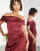 ASOS DESIGN - Brudepiger - Bordeauxrød maxikjole i satin med bardotsnit og draperinger samt slå-om