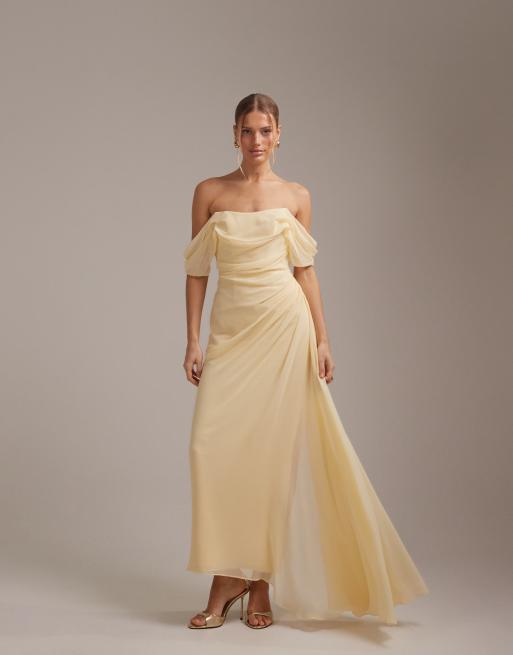 ASOS DESIGN - Brudepiger - Gul bardot-kjole