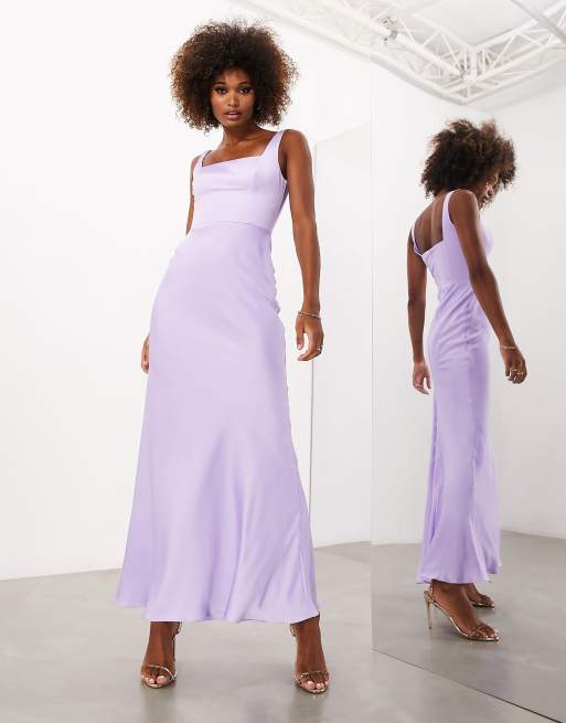 ASOS DESIGN - Brudepiger - Lyslilla maxikjole med firkantet hals i satin