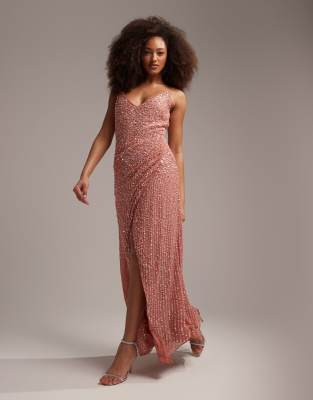 ASOS DESIGN - Brudepiger - Støvet rosa cami-maxikjole med udsmykninger og drapering i siden