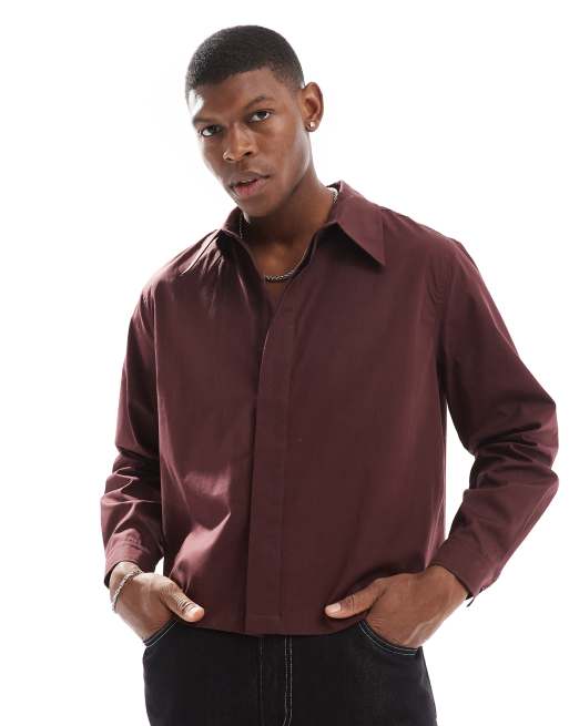 ASOS DESIGN - Brun afslappet cropped poplin-skjorte med skjult knapstolpe