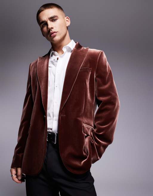 ASOS DESIGN - Brun blazer i velour i slim fit