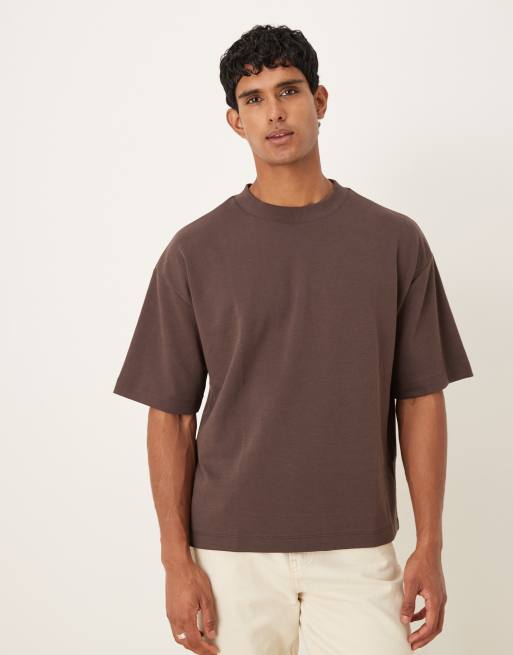 ASOS DESIGN - Brun blød kraftig oversized T-shirt i firkantet pasform