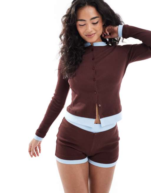ASOS DESIGN - Brun cardigan med knapper og kontrasterende kanter i dobbeltlag - Del af sæt