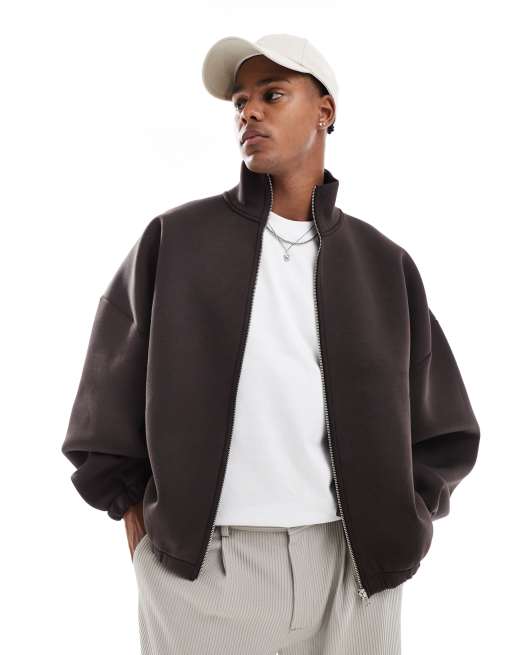 ASOS DESIGN - Brun ekstremt oversized træningsjakke i scuba-lignende materiale
