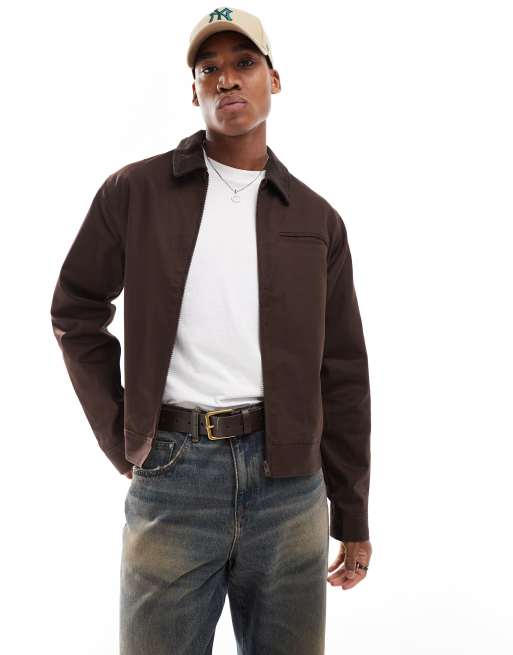 ASOS DESIGN - Brun Harrington-jakke med fløjlskrave