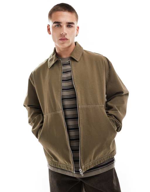 ASOS DESIGN - Brun Harrington-jakke med kontrasterende syninger