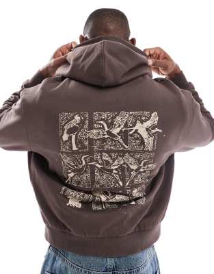 ASOS DESIGN - Brun hættetrøje med print på ryggen i firkantet pasform
