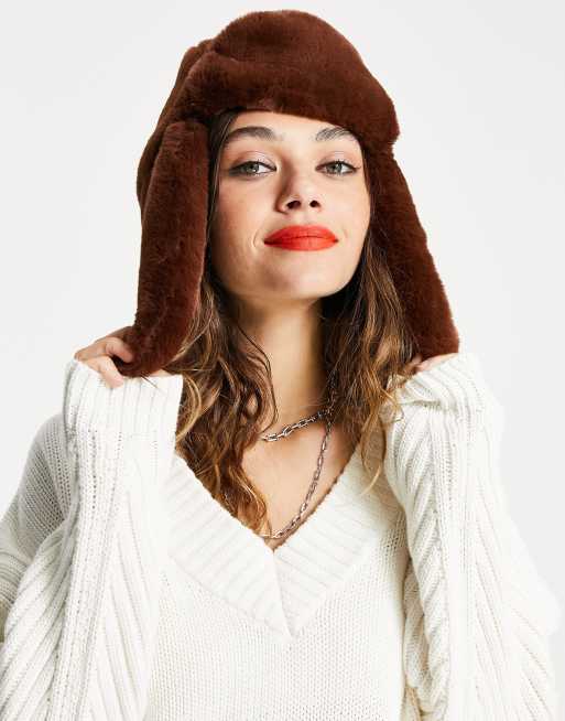 ASOS DESIGN - Brun jægerhat i imiteret pels