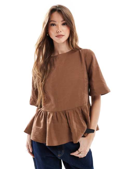 ASOS DESIGN - Brun kitteltop i cupro med bindebåndsdetaljer i ryggen