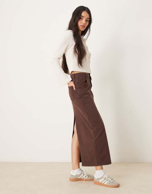 ASOS DESIGN - Brun maxinederdel med slids bagpå i denim