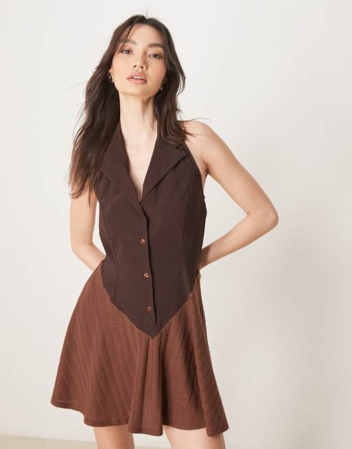 ASOS DESIGN - Brun minikjole med halterneck og knapper