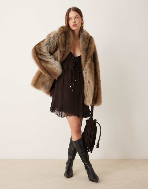ASOS DESIGN - Brun/minkfarvet frakke i imiteret pels med kontrastdetaljer