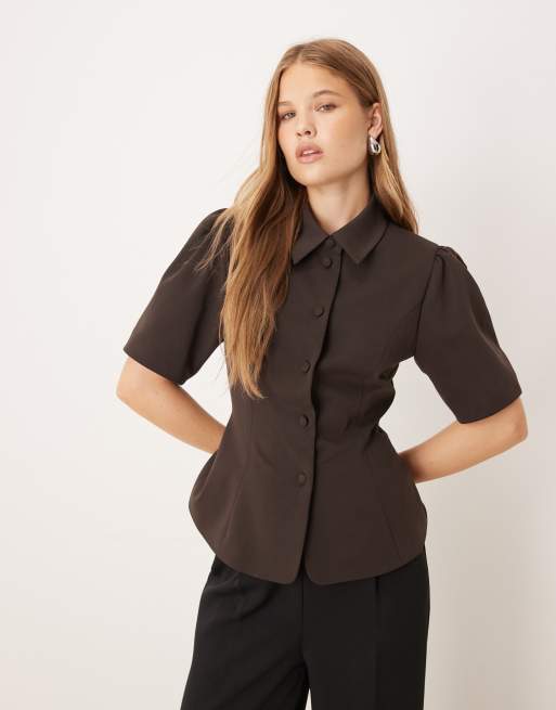 ASOS DESIGN - Brun og kortærmet blazer i tætsiddende pasform