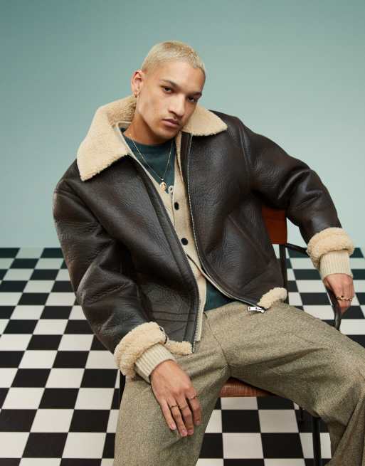 ASOS DESIGN - Brun og oversized aviator-jakke i imiteret læder med cropped snit
