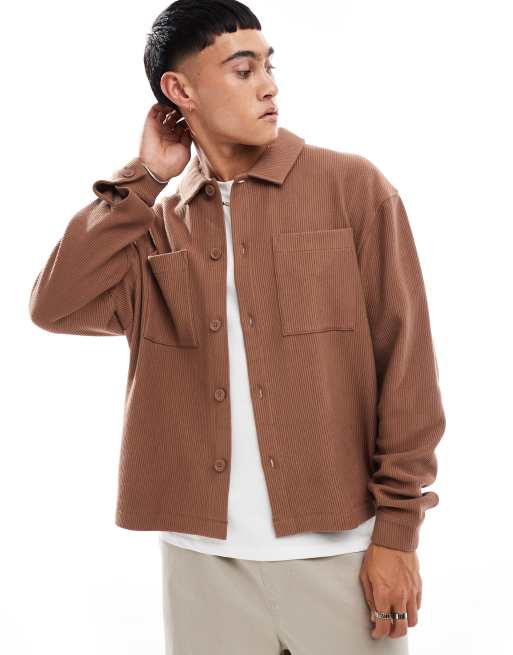 ASOS DESIGN - Brun og oversized Harrington-jakke i ribstrikket jersey