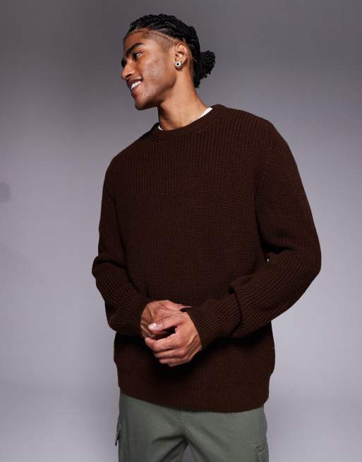 ASOS DESIGN - Brun patentstrikket afslappet trøje