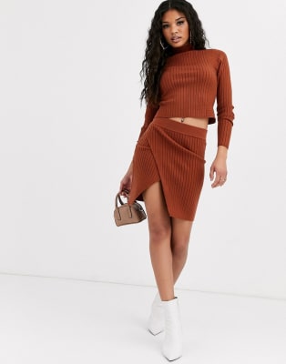 ASOS DESIGN - Brun ribstrik med detalje - Del af sæt
