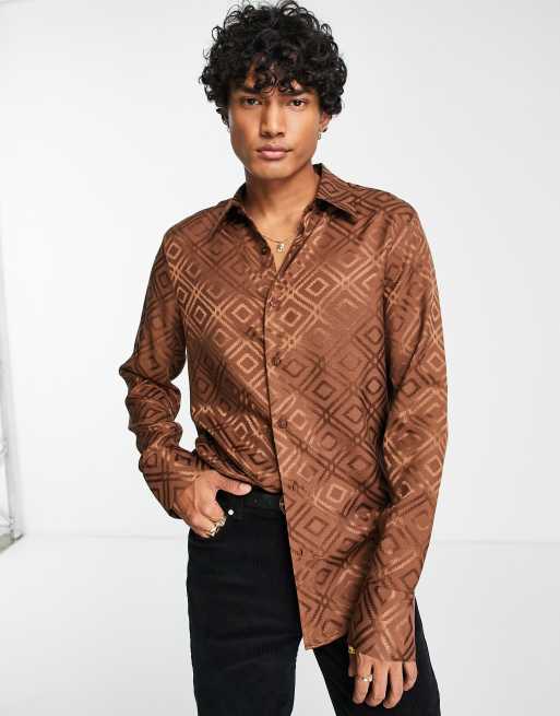 ASOS DESIGN - Brun skjorte i satin-jacquard i regular fit