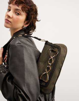 ASOS DESIGN - Brun skuldertaske med monogramprint og bidseldetalje