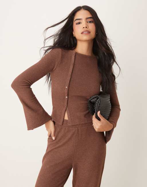 ASOS DESIGN - Brun superblød cardigan med knapper og asymmetrisk design