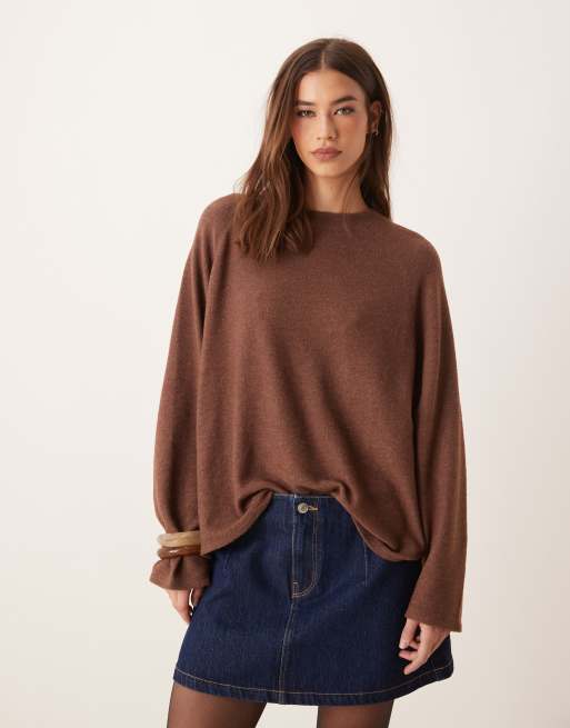 ASOS DESIGN - Brun, superblød og oversized top med raglanærmer