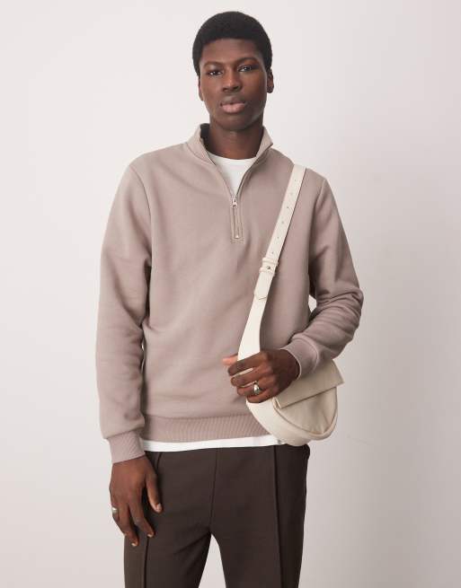 ASOS DESIGN - Brun sweatshirt med kvart lynlås
