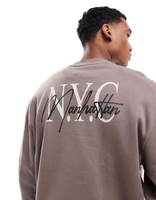 ASOS DESIGN - Brun sweatshirt med 'NYC'-print